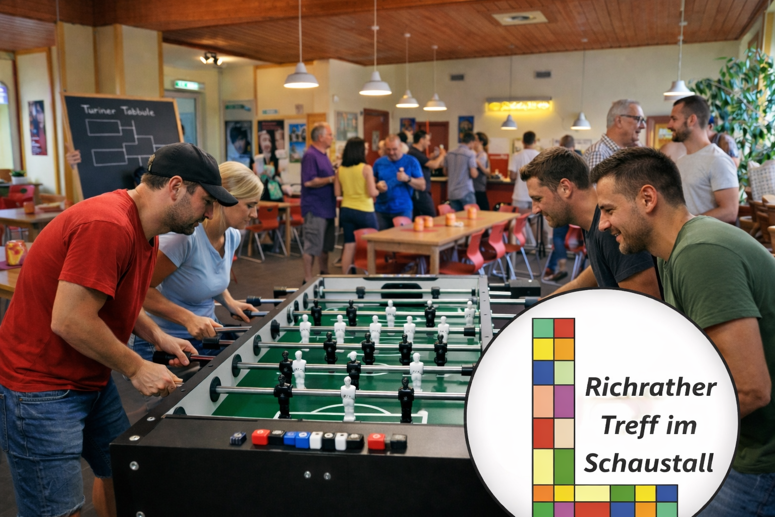 Wir laden herzlich zum ersten Richrather Kickerturnier ein! In lockerer Atmosphäre möchten wir gemeinsam spielen, mitfiebern und einen sportlich-geselligen Abend verbringen. Gespielt wird in 2er-Teams auf 3 Kickertischen, mit maximal 12 Teams. Jeder Platz wird ausgespielt, sodass jedes Team gleich oft spielt und alle die gleiche Anzahl an Partien haben. Fairness und Spaß stehen dabei klar im Vordergrund. 📌 Turniermodus auf einen Blick 2er-Teams Maximal 12 Teams Spielbetrieb auf 3 Tischen Jeder Platz wird ausgespielt Jedes Team spielt gleich oft 🎁 Für zusätzliche Spannung sorgt ein Überraschungsgewinn für die Teilnehmenden. 👉 Um Anmeldung wird gebeten – Anmeldeschluss ist der 12.02.